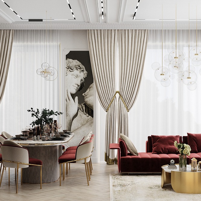 Дизайн интерьера в стиле ар-деко и нео-классика предусматривает принцип роскоши и благородство актуально вне времени.