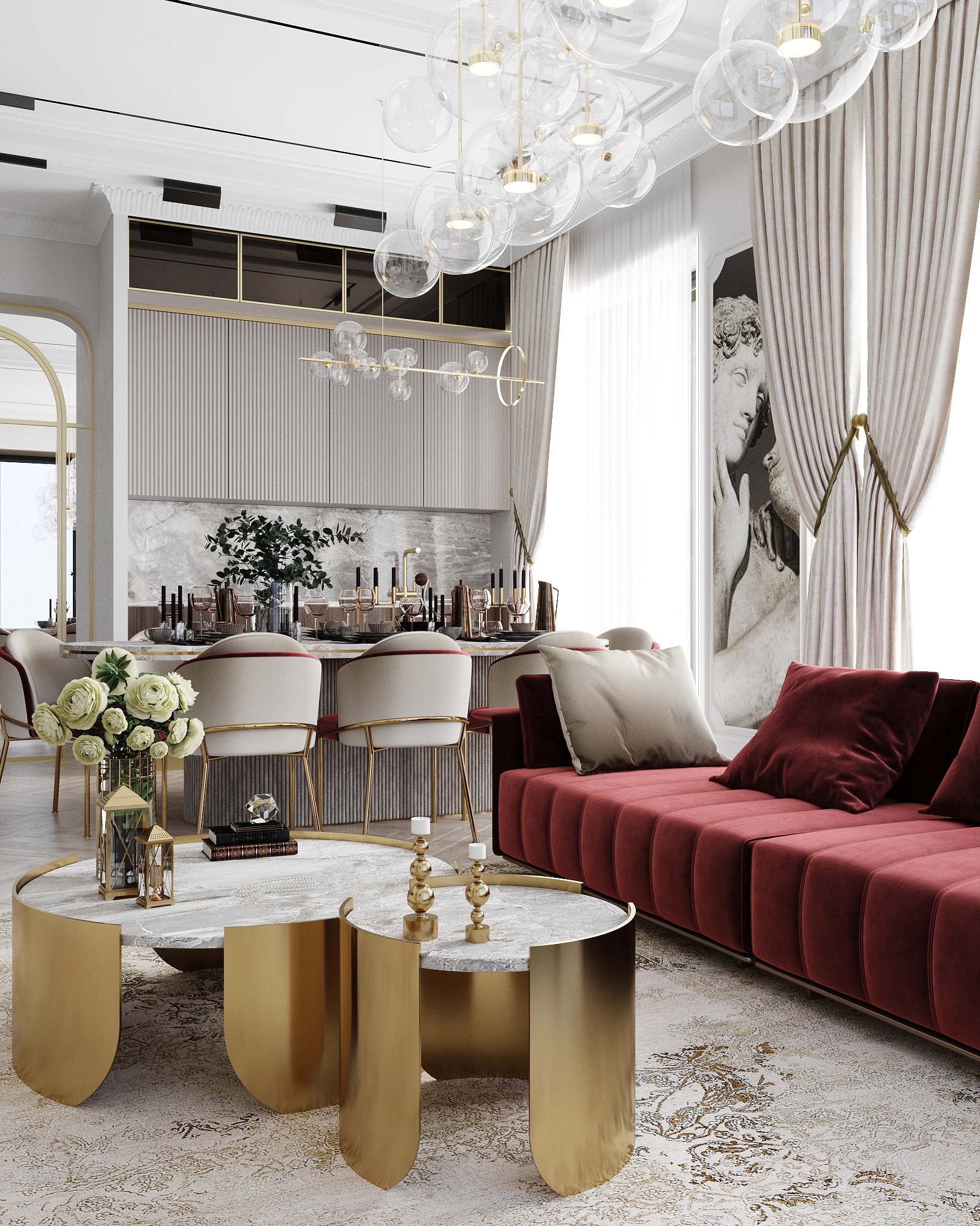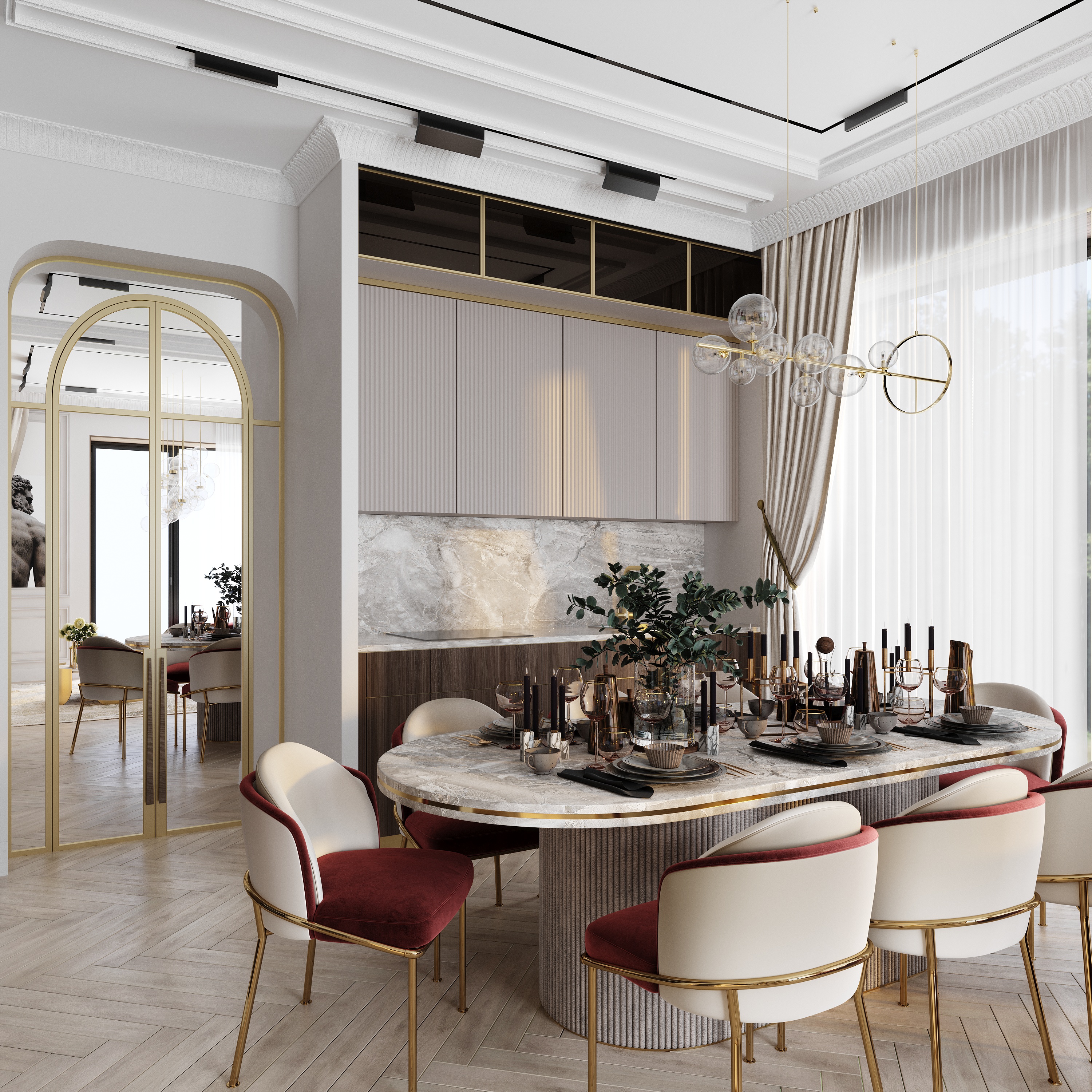 Пространство формирует атмосферу спокойной роскоши и гармонии.