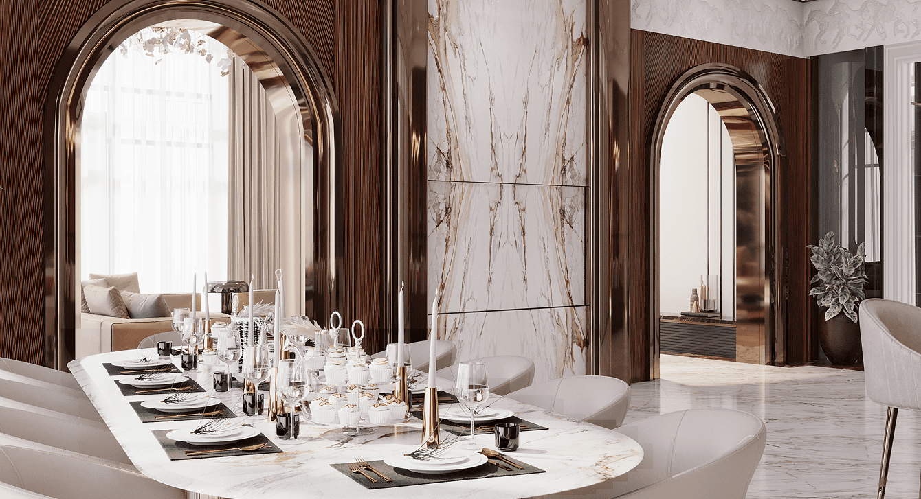 Дизайн интерьера в модерна с элементами нео-классики делает интерьер элегантным и премиальной. Как у мировых архитектурных бюро.