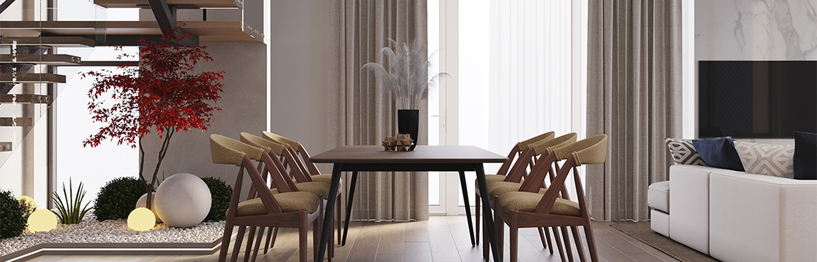 Мы формируем интерьеры, которые остаются актуальными долгие годы — без навязчивых трендов и визуального шума. Пространства, в которых важно всё: свет, воздух, пропорции, звук, запах дерева, спокойствие цвета, плавность линий.